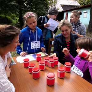 Gleich einen Tag später waren wir mit einem kleinen Stand auf dem Sommerfest des DRK-Zentrums. Hier galt es, sich Geräusche zu merken und das Geräusche-Memory zu lösen.